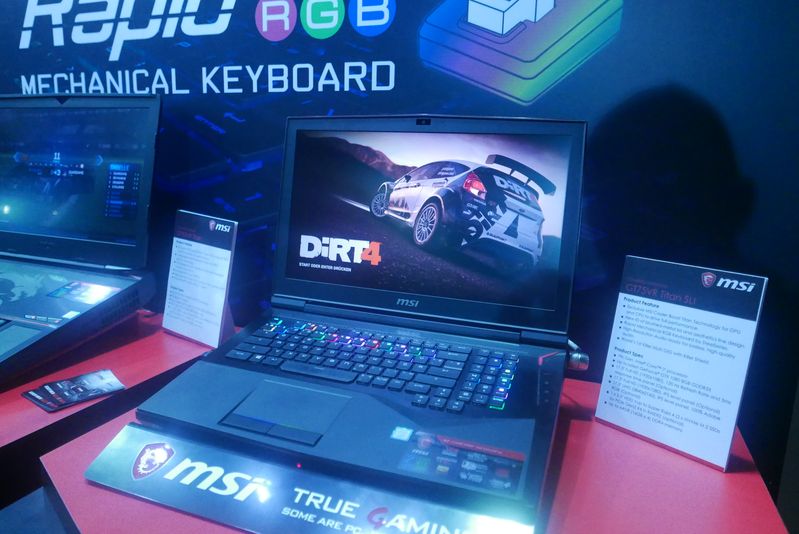 Si jamais vous ne souhaitez pas autant investir, deux nouvelles machines pourraient vous intéresser. Les GE73VR et GE63VR sont beaucoup plus abordables et transportables que le GT75VR tout en étant suffisamment puissants pour ne pas être largués avec les récentes sorties. Pour avoir testé rapidement DiRT 4, cela tourne nickel à 60 FPS sans ronfler et sans beaucoup chauffer. On retrouve aussi un i7 Kaby Lake, une Nvidia GTX 1070 ou 1060, un écran 17,3 pouces pour le 73 (ou 15,6 pour le 63) et un clavier SteelSeries (non mécanique mais quand même RGB). Ils pèsent respectivement 2,8 et 2,2 kg, ce qui beaucoup plus raisonnable. Enfin leurs prix est de 1799 et 1699 euros, plus rationnels également.