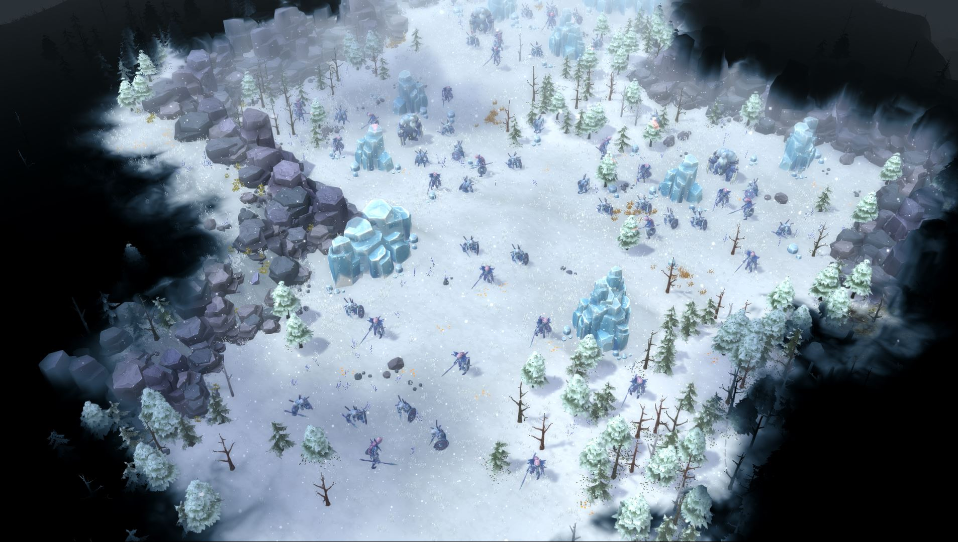 Un bon jeu de stratégie s’accompagne toujours d’une campagne et celle de Northgard semble tenir des promesses hautes en couleur. L’histoire vous met dans la peau d’un fils de roi déchu dont la famille a été massacrée. Vous et vos conseillers êtes exilés et vous vous retrouvez sur Northgard, une nouvelle terre promise mentionnée dans de nombreuses légendes. Vous parcourez la carte de missions en missions scénarisées (il y en aura environ treize) dans lesquelles vous pourrez choisir le clan que vous voulez, sauf certaines missions restreintes. On nous a montré un scénario très intéressant faisant directement référence à la célèbre série Game of Thrones car vous serez menacés par une armée gelée venant du nord. Une fois que le printemps montrera le bout de son nez, les semblants de zombies vont dégeler et viendrons vous attaquer en masse. Votre ultime but sera simplement de survivre et pour cela, vous devrez bourriner dans vos récoltes, améliorations et recrutements sous peine de vous faire rouler dessus. Une partie avancée sur cette mission nous a aussi été présentée afin de nous montrer une base très avancée, avec des avants-postes bien évolués et des alliés tout autant préparés à la baston. Baston qui a été teasée pendant quelques secondes afin de garder la surprise mais ce court temps montrait un nombre hallucinant d’ennemis et une bataille de dingue à la limite de la défaite, il faut serrer les fesses et espérer que cela passe.