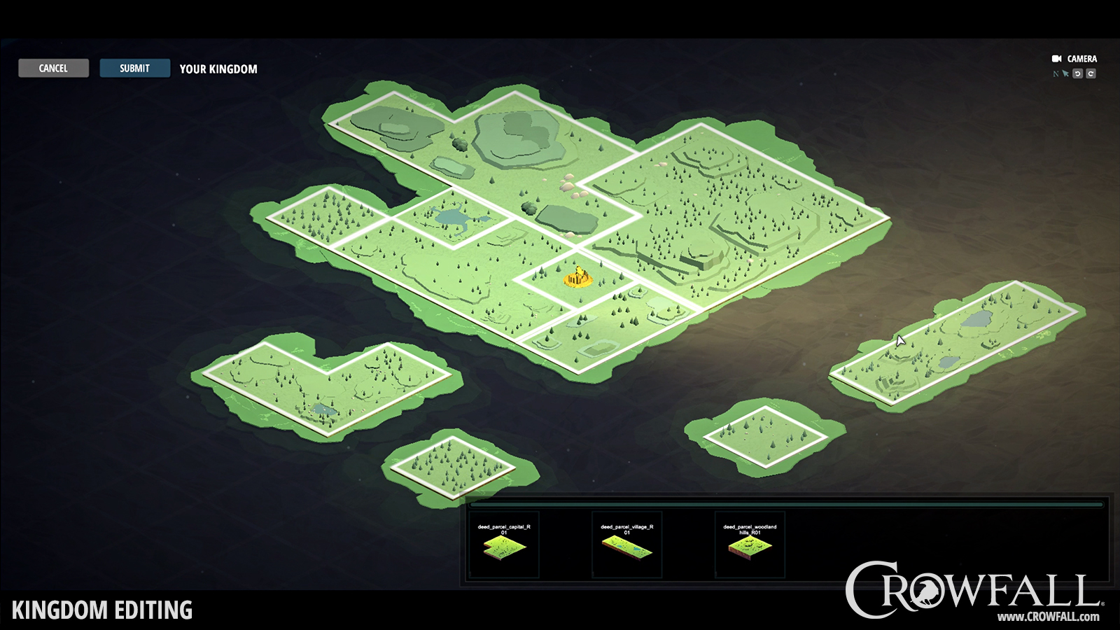 La démo montrée lors de la gamescom par Gordon Walton et J. Todd Coleman faisait la part belle des possibilités de Crowfall grâce à un moteur efficace même sur de petites machines. La carte s’édite en très peu d’actions, c’est très intuitif et les modifications sont immédiatement visibles et testables. Même en détruisant tout avec des explosifs ou une catapulte, la gestion de la physique semble plutôt réelle et ne fait pas tousser les bécanes (car c’est sûrement géré côté serveur). L’édition permet aussi d’activer le mode PvP (les joueurs peuvent s’attaquer sans souci), de rendre un serveur privé, de modifier le monde comme un dieu – l’administrateur peut déplacer des cases sur lesquelles est posée la carte (voyez la carte comme une succession de plusieurs rectangles) – ou même détruire votre création pour de bon.