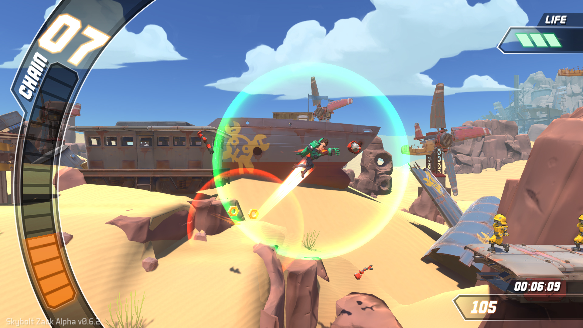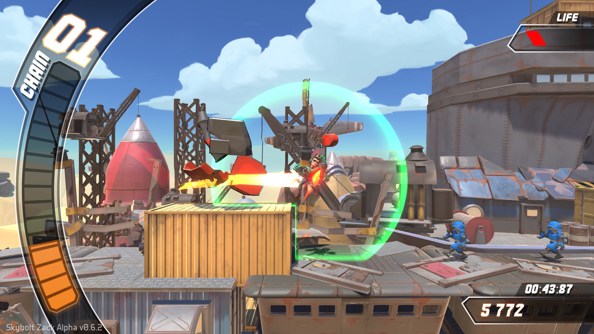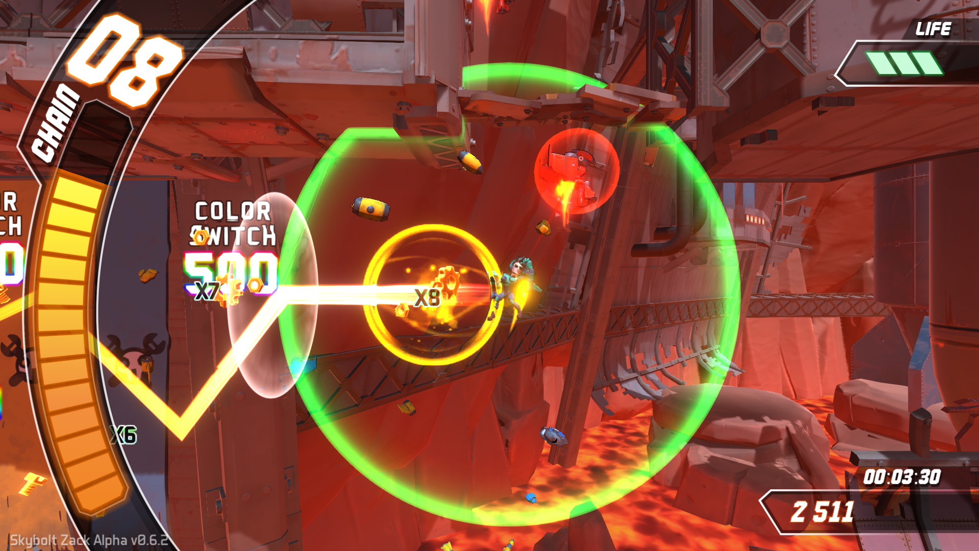 De l’aveu du membre du studio sur place, Skybolt Zack n’est plus un petit jeu d’étudiants mais un réel projet commercial et cela se voit dès les premiers instants de la démo car c’est beaucoup plus soigné. Le tutoriel est plus complet et clair, et on sent une vraie envie d’offrir dès les niveaux du début. Les itinéraires secondaires promis sont bien là et bien séparés à tel point que l’on peut sentir une certaine frustration à voir les étages supérieurs et ne pas y parvenir. Cette privation est l’une des forces du titre car cela créé une forte envie de recommencer pour faire mieux et faire monter son nom dans le classement mondial. Comme annoncé SZ sera un titre essentiellement axé sur le scoring, il y aura donc un leaderboard en ligne afin de comparer vos résultats avec les joueuses et joueurs du monde entier.