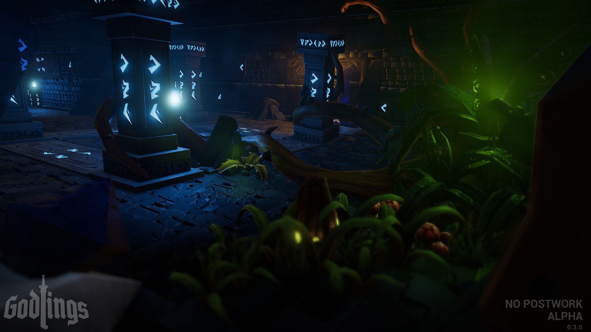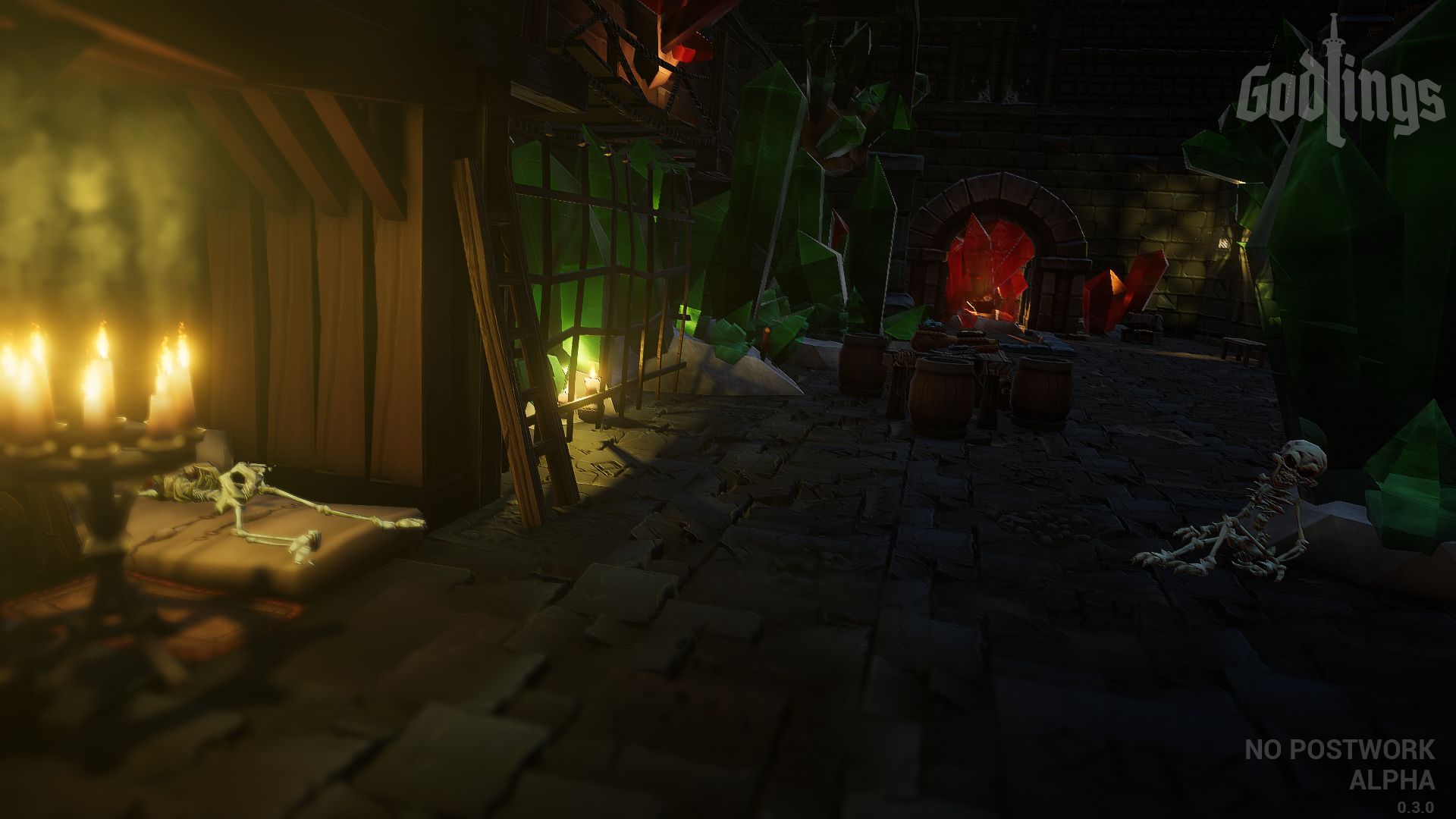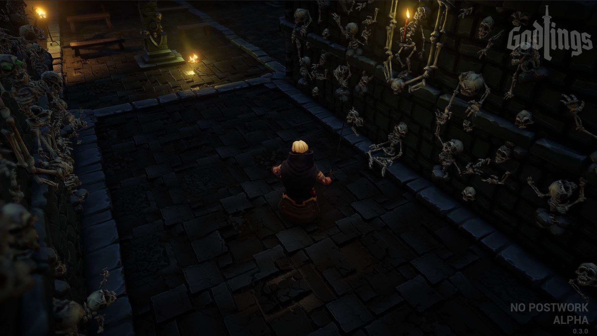 Godlings est un jeu de rôle basé sur l’action (ARPG) avec des combats en temps réel. Votre but est d’obtenir le pouvoir absolu mais pour cela il va falloir parcourir un long et grand donjon. Celui-ci est généré aléatoirement à chacune de vos morts, le jeu se présentant aussi comme un Rogue-lite. En vous baladant dans les couloirs, vous pourrez découvrir de nouvelles armes parmi une dizaine de types différents. En battant les monstres, vous montrez de niveau afin de débloquer de nouvelles capacités parmi un gros graphe de 90 choix environs.