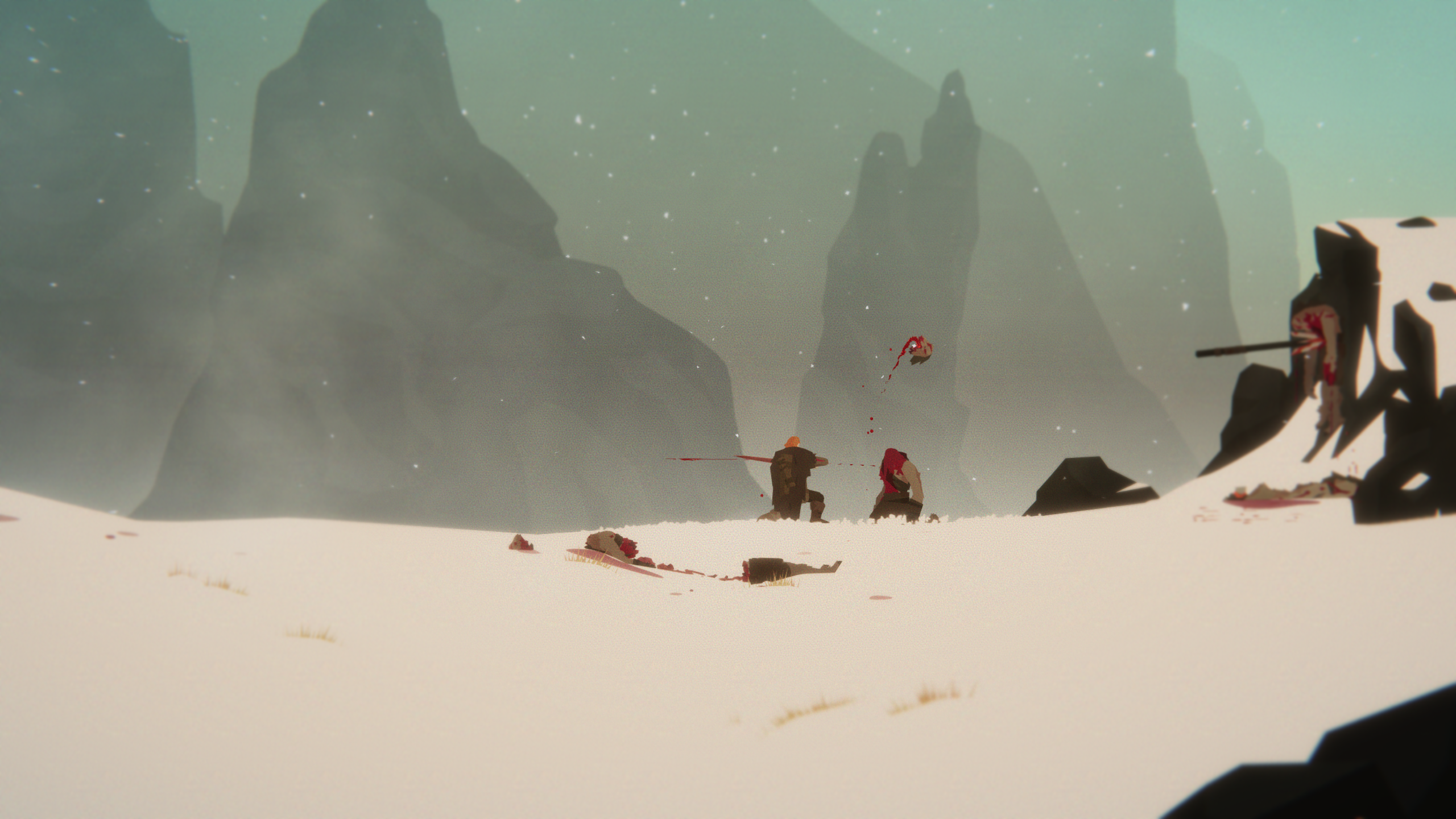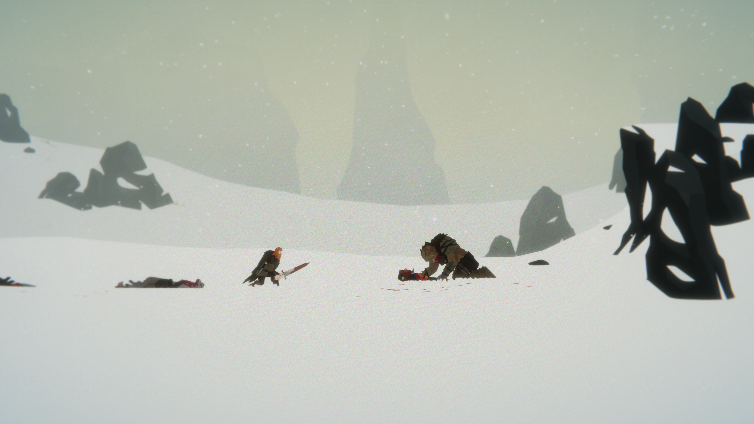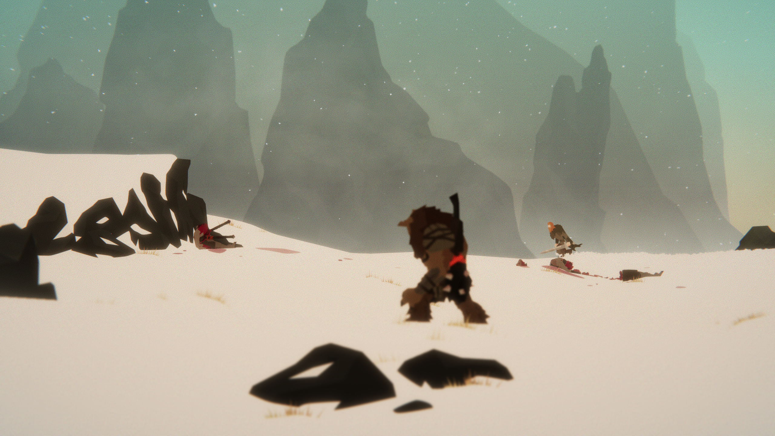 L’entraînement terminé face à sa femme (dans le jeu hein), notre gaillard du nord s’en va à la recherche de sa famille. Tel un retour en arrière, le défilement se fait étrangement vers la gauche, comme si on voulait revenir à un état précédant. C’est perturbant mais tout à fait logique du point de vue narratif. L’histoire sera racontée de façon implicite, comme Limbo ou Inside justement. Il n’y aucun élément graphique à l’écran, juste les personnages et le décor. Tout est suggéré à l’aide de la narration environnementale.