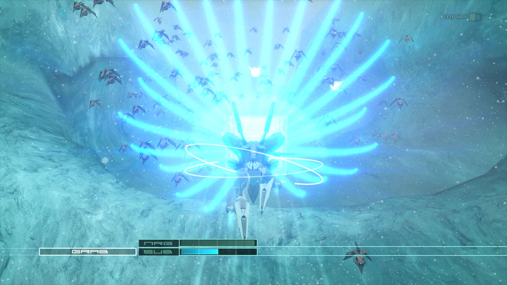 Il faut cependant avouer que je n’étais pas là pour la 4K. Paradoxalement à mes convictions, la VR était pour moi l’attrait majeur de cette nouvelle sortie. J’ai donc eu la chance d’essayer ZoE 2 avec un Steam VR, le casque de Valve. Premier essai avec cette nouvelle version et je suis plutôt impressionné. Le casque est cependant un peu lourd et la grille de pixels est encore visible mais la qualité générale est bluffante. Pour ce qui est de l’essai dans le Jehuty, c’est une réussite. On peut regarder autour de soi pour découvrir l’entièreté du cockpit, on voit ses membres virtuels, et on peut voir les ennemis arriver de toute part. Mon gros regret est que les contrôles se font avec la manette de PS4 et non les contrôleurs dédiés du casque. Je n’ai quasiment pas souffert de cinétose, chose incroyable pour un jeu très rapide où le robot se téléporte presque dans tous les sens. J’ai toutefois souffert lorsque le Jehuty avançait tout droit alors que j’avais la tête tournée. Mais une fois ce détail connu et corrigé, l’expérience fut exaltante même comme le boss final où l’action est plus folle qu’avant.