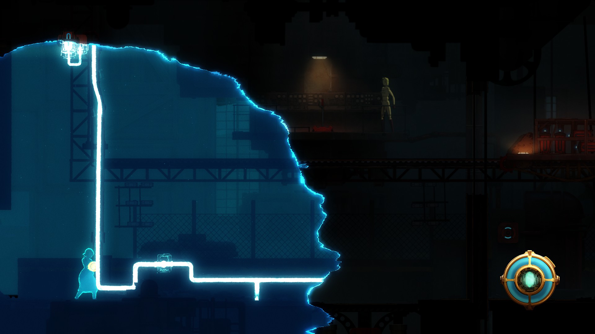 S’il est maintenant clair que les gars de chez ThroughLine Games gèrent tout l’aspect cinématographique de leur bijou, les choses ont tendance à se compliquer pour la section Gameplay. Anne se déplace dans un univers en 2.5D ; c’est-à-dire qu’en plus de bouger vers la droite ou la gauche de l’écran, elle peut aussi se mouvoir en utilisant la profondeur d’un champ, pour y découvrir un nouveau lieu et/ou progresser dans son aventure. Concrètement, il n’y a pas grand-chose à redire sur le Level Design, confectionné avec une subtile intelligence. C’est surtout lorsque Anne doit sauter de plate-forme en plate-forme, ou utiliser ses ailes mécaniques pour atteindre une surface surélevée, que quelques molaires risquent de grincer d’agacement. Ces phases mettent en exergue une rigidité éreintante dans les déplacements de l’héroïne ; il ne sera donc pas rare de se vautrer et d’avoir à recommencer une série de sauts barbants depuis le début.