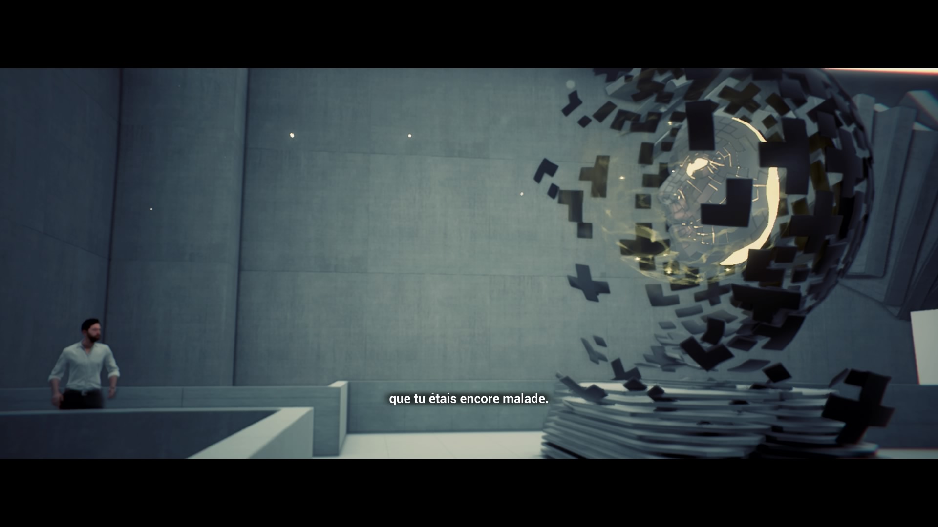 C’est grâce à un interminable didacticiel (qui s’étend sur près d’1/3 de l’aventure, bigre !), que l’on apprend à contrôler notre héros. Celui-ci dispose de deux super pouvoirs : celui de ralentir le temps – idéal pour prendre l’avantage dans des gunfights musclés – ainsi que celui qui lui permet de se décorporer et de court-circuiter certains appareils électriques, comme les caméras de surveillance, mais aussi les… les… Ben c’est tout en fait, juste les caméras. Et c’est là le premier mal dont est atteint Past Cure : son manque de profondeur.