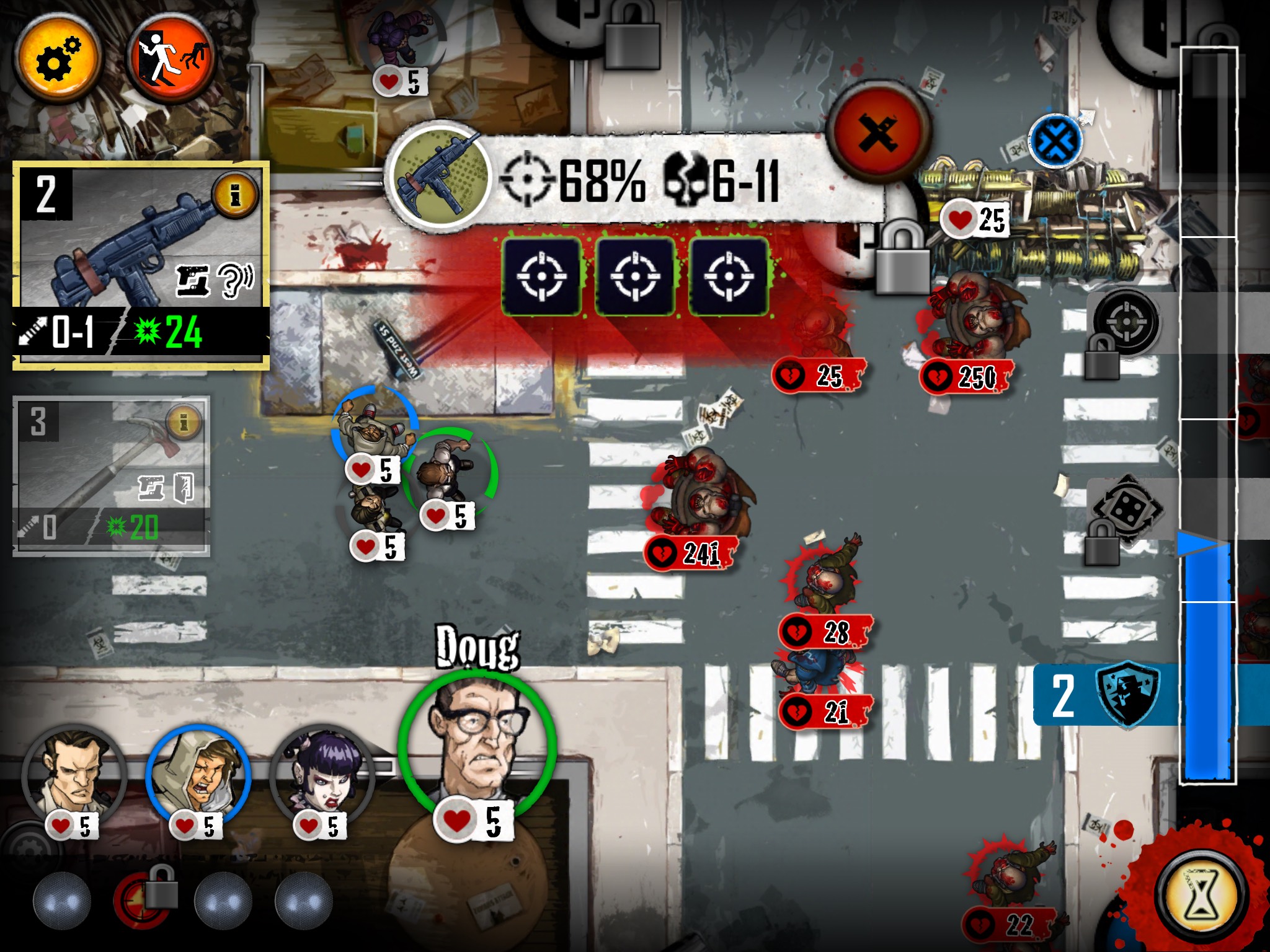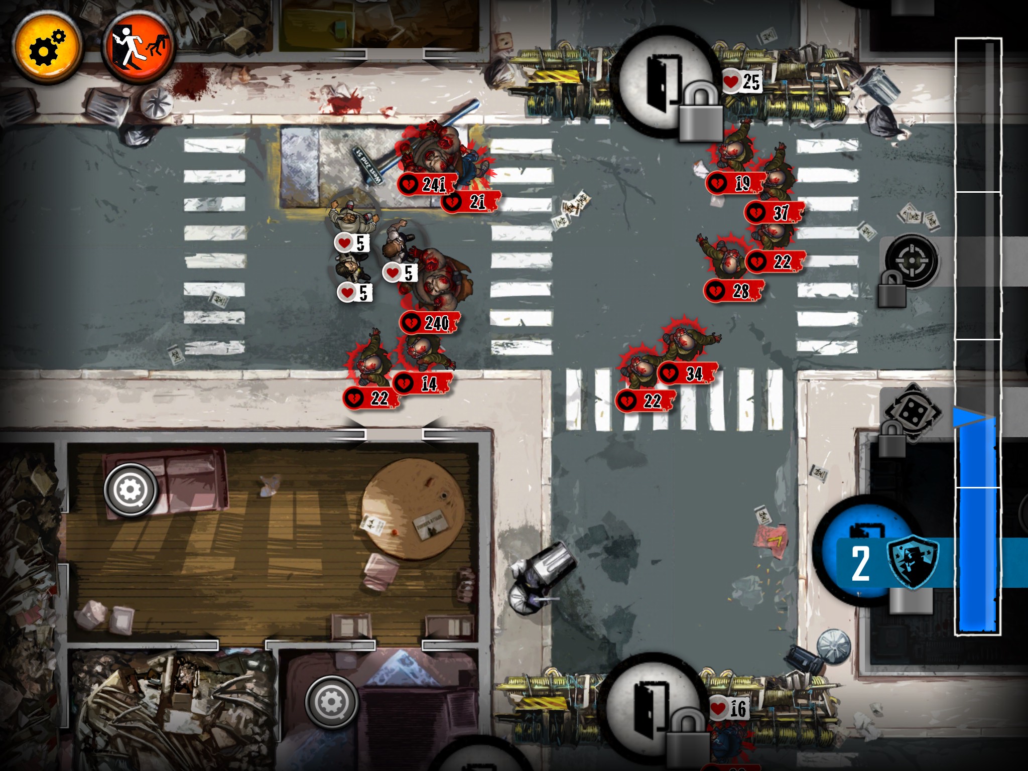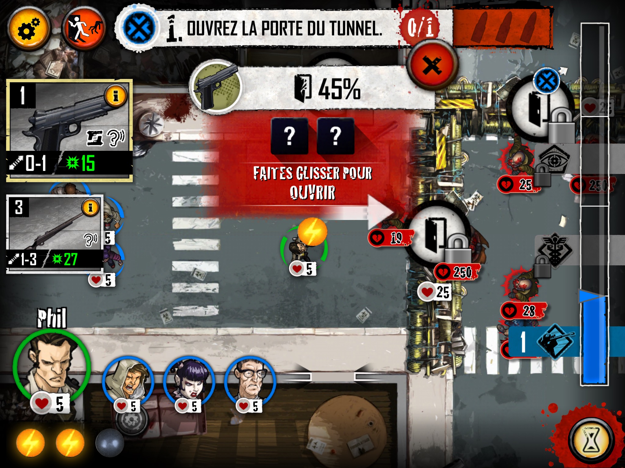 L’appli reprend quasiment en tout point le jeu de base Zombicide, mêmes illustrations, mêmes personnages, vu du dessus. A chaque tour vous avez 3 actions à faire, vous pouvez donc vous déplacer, fouiller, ouvrir des portes et bien sur tuer des Zombies. Tout en suivant un objectifs bien précis. Tout se fait avec des jets de dés, il suffit juste de glisser son doigt pour lancer les dés. Donc oui il y a de l’aléatoire, tout comme dans le jeu de plateau.